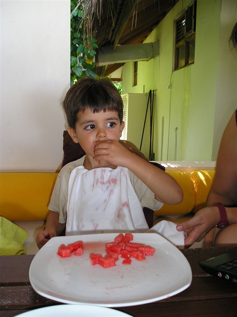 Decir que con la cómida de Pau no hemos tenido ningún problema. El chef sabía muy bien como tratar el tema, además parece ser que hay muchos irlandeses celiacos, y que han tenido más de un huésped celiaco, y sabían perfectamente sobre como tratar la alimentación. De todas maneras quiso hablar con nosotros para saber que tiempo de reacción tiene Pau si come gluten y para decirnos que nos puede hacer lo que le pidamos sin problemas. Es un chico alemán jovencito, que nos está haciendo unas cenas estupendas. Salió de Alemania con su mochila a coger experiencia en diferentes hoteles del mundo, y ha caído en Maldivas por lo menos por dos años que tiene el contrato. Bucea con Pablo todas las mañanas.