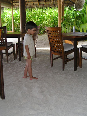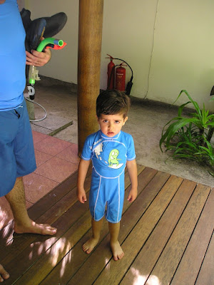 Ayer fue el típico día de tansición después de un viaje tan largo, con sus cambios de ritmo en general, etc... vamos, el día de adaptación para todos nosotros. Pero hoy no se escapa ya la primera inmersión en el Índico. Susana y Pau están durmiendo en el bungui, y yo me he levantado más pronto para ir a desayunar y luego al buceo.