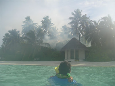El tiempo sigue estupendo en Kandholudu (toco la mesa que es de madera). Ahora mismo hace sol, todavía con algo de bruma porque no hace mucho que ha amanecido.